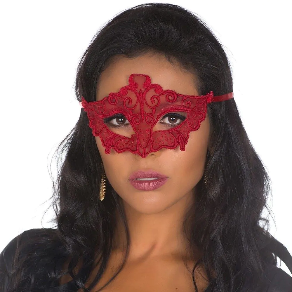 Máscara confeccionada em tulle bordado.