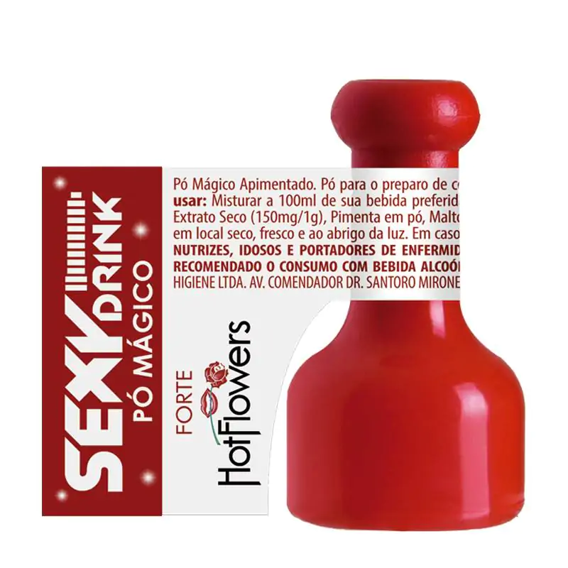 Estimulante sexual natural, com maior concentração de Pimenta e Gengibre. A pimenta é famosa por seu uso que provoca a excitação sexual com um efeito atônico marcante. Simples de usar, basta misturar na bebida e prontinho, somente não é recomendado em bebidas gasosas.